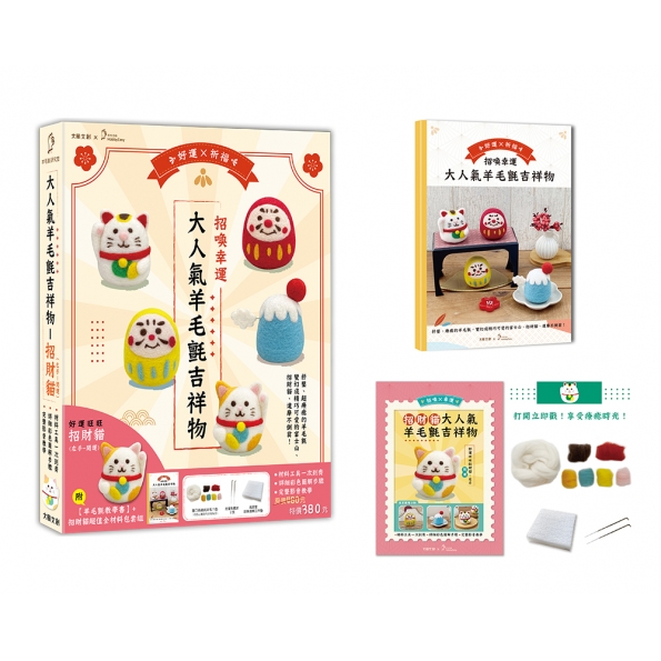 招喚幸運!大人氣羊毛氈吉祥物:好運旺旺招財貓-左手開運【盒裝版】 (內含《吉祥物教學書》+羊毛氈超值全材料包套組) |