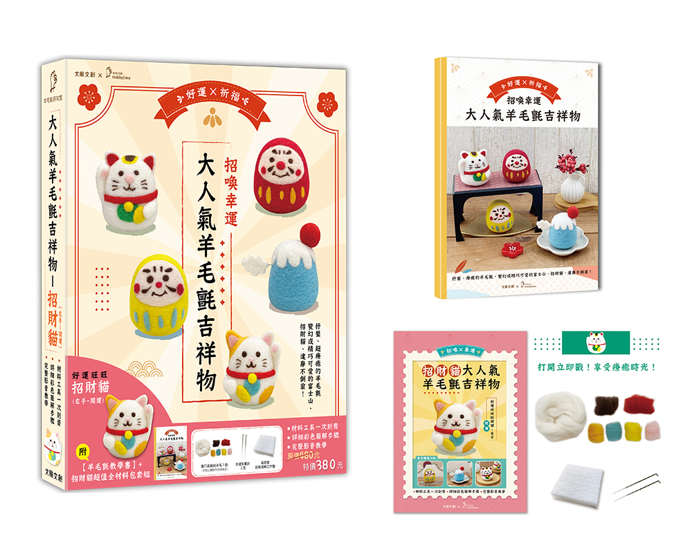 《招喚幸運!大人氣羊毛氈吉祥物》 × 「羊毛氈超值全材料包套組——招財貓」