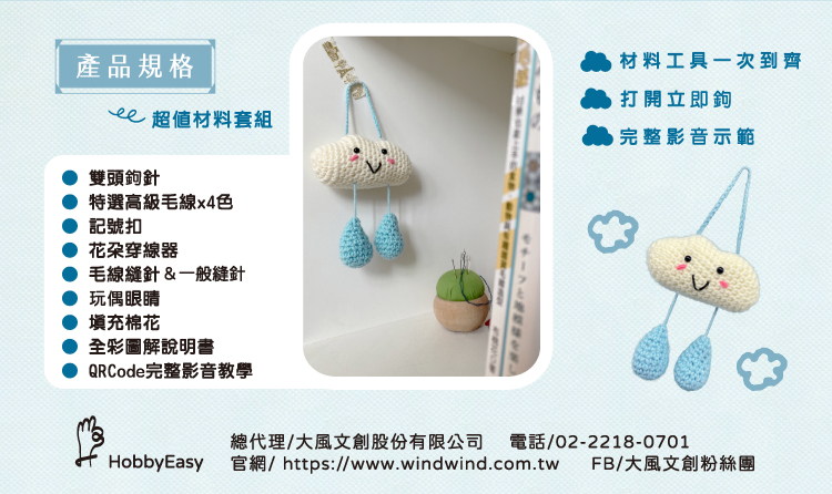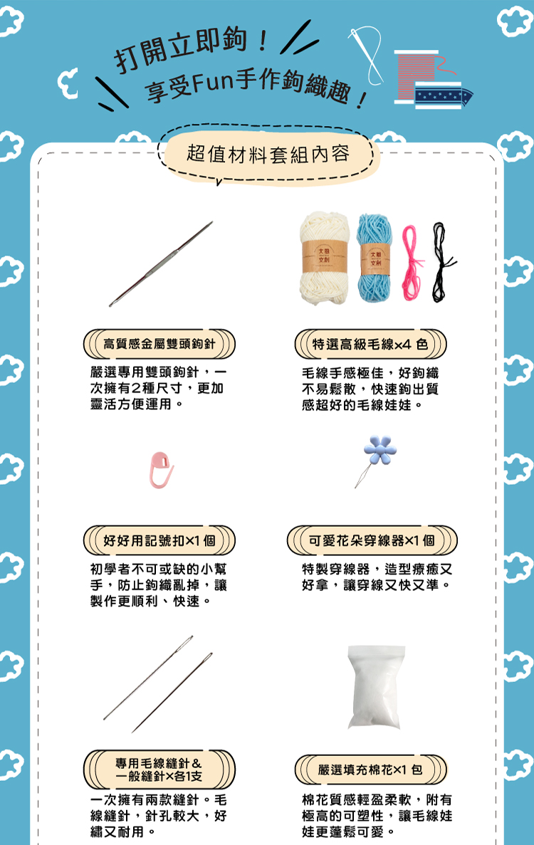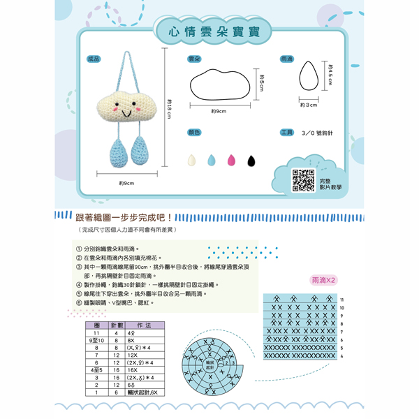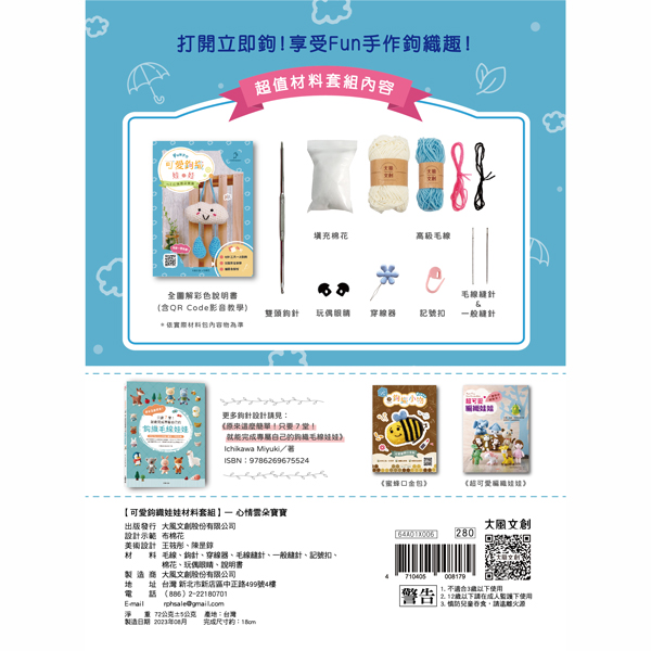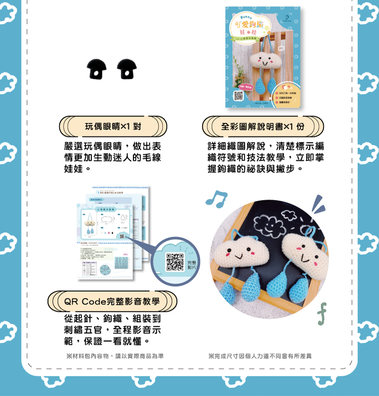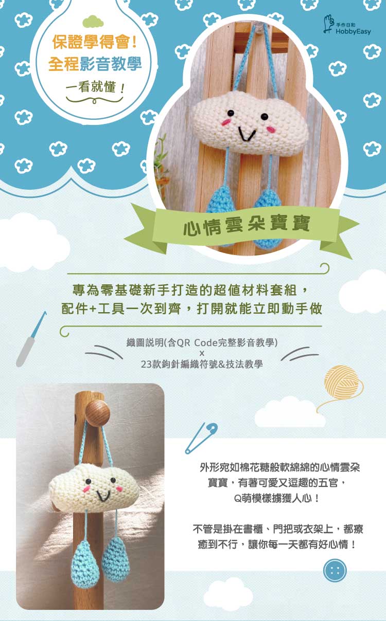 可愛鉤織娃娃【心情雲朵寶寶】 超值全材料包套組 材料工具一次到齊,打開立即鉤, 完整影音教學,詳細織圖全解析,新手也能一次學會!