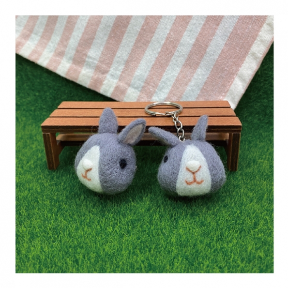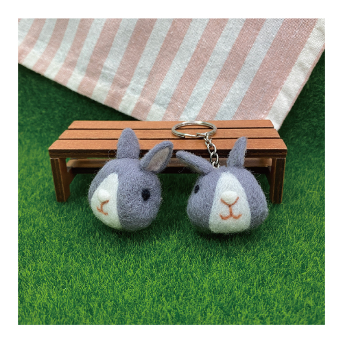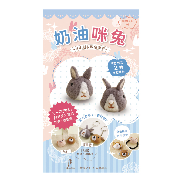 【HobbyEasy】動物派對羊毛氈材料包套組:NO.5奶油咪兔(附別針、鑰匙圈,全程影音教學) |