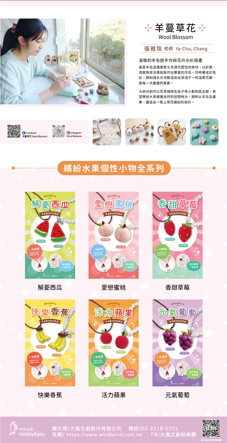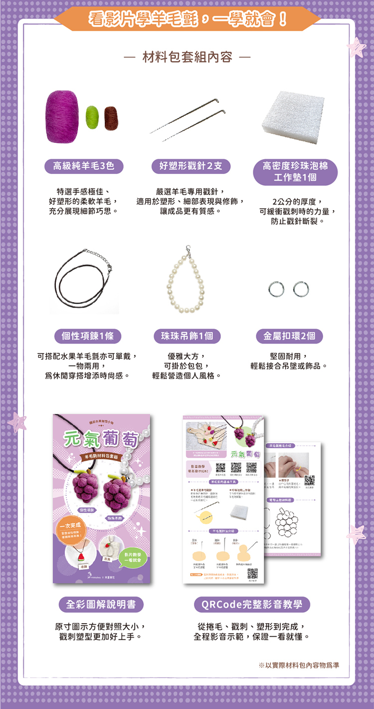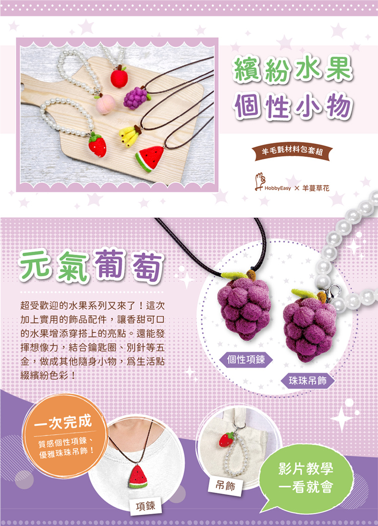 繽紛水果個性小物-元氣葡萄(含羊毛氈超值全材料包套組,附項鍊、吊飾,全程影音教學)