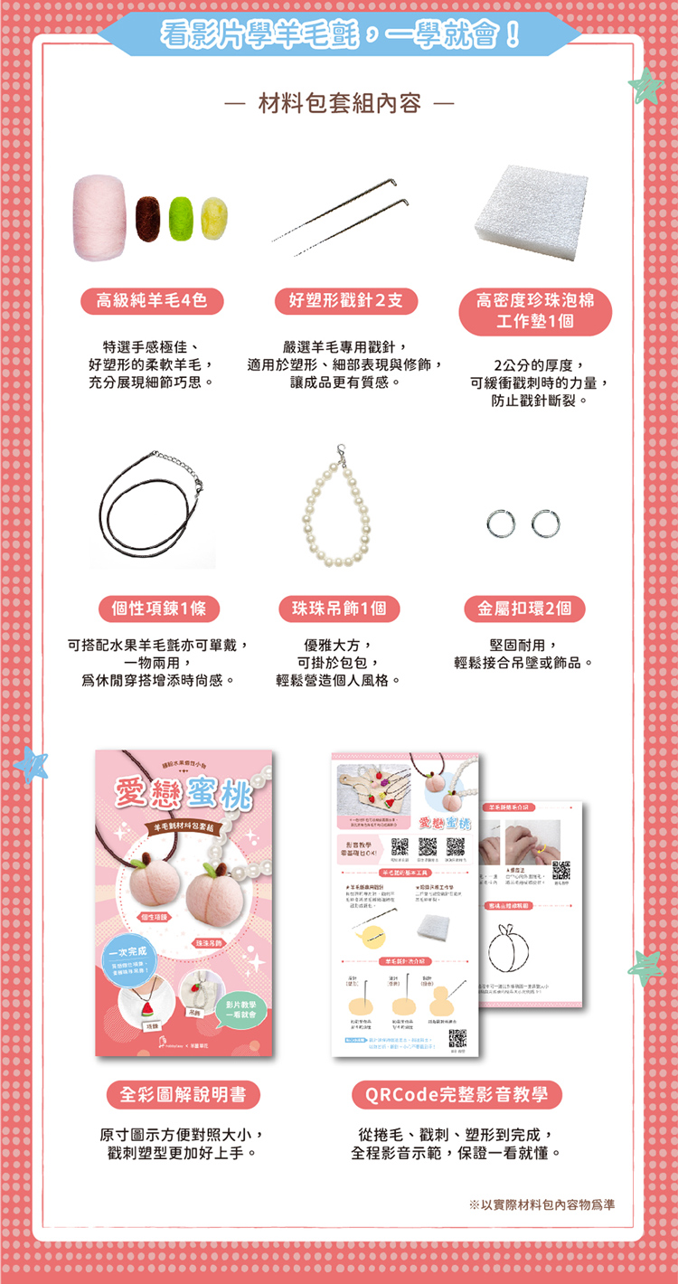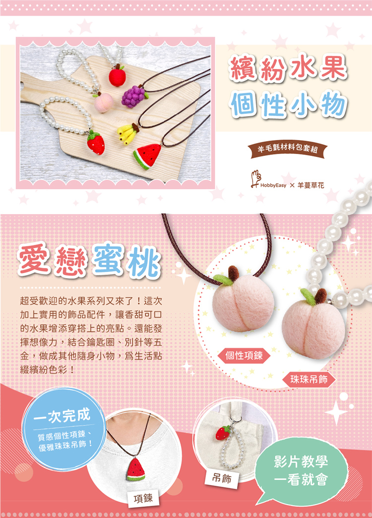 繽紛水果個性小物-愛戀蜜桃(含羊毛氈超值全材料包套組,附項鍊、吊飾,全程影音教學)
