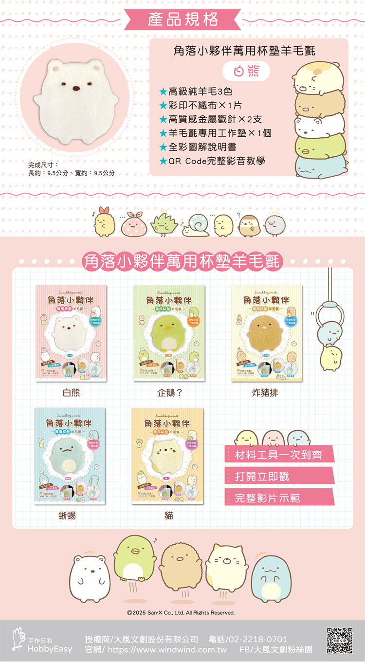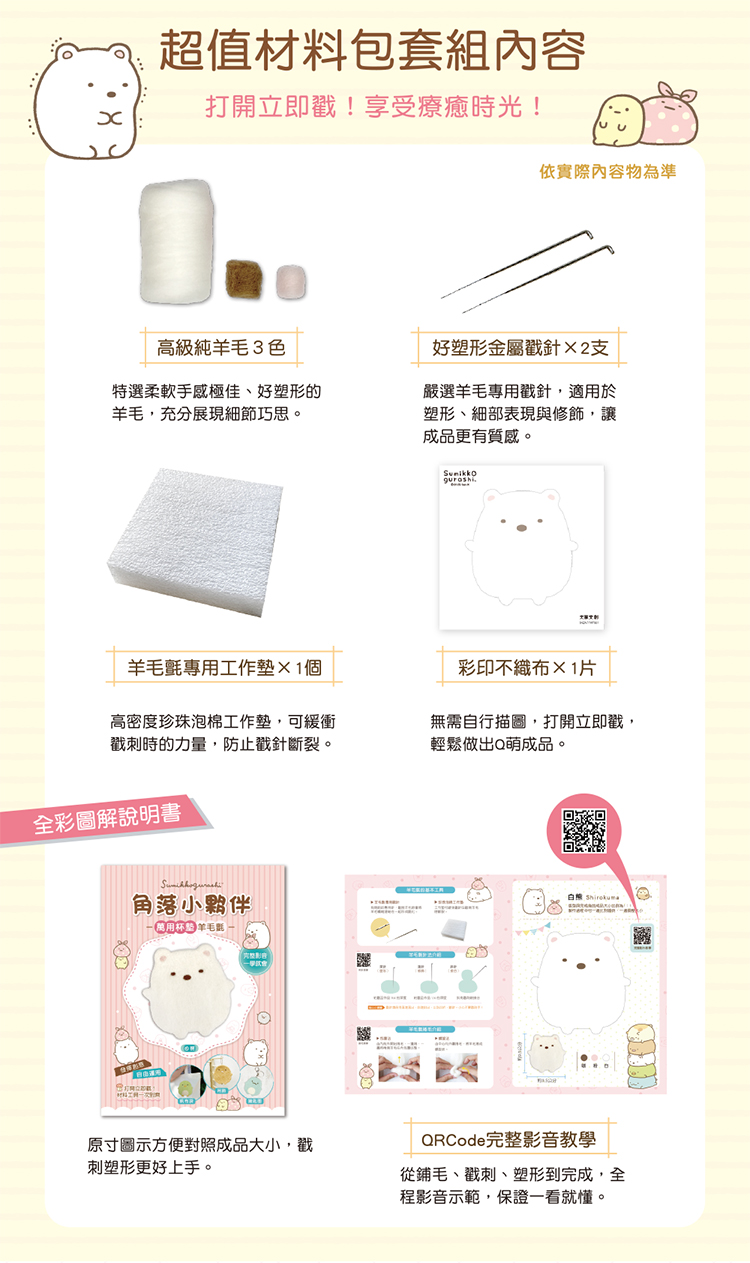 角落小夥伴萬用杯墊羊毛氈:白熊(超值全材料包套組,含影音教學)