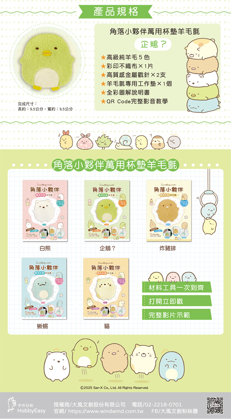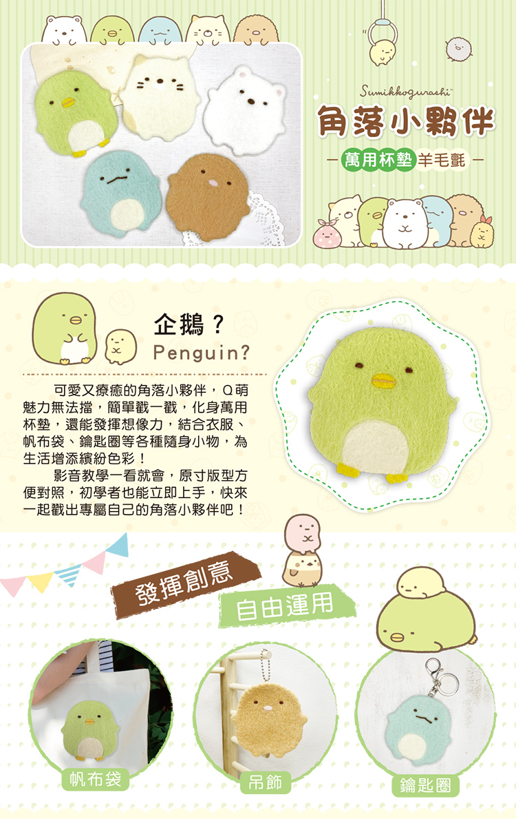 角落小夥伴萬用杯墊羊毛氈:企鵝?(超值全材料包套組,含影音教學)