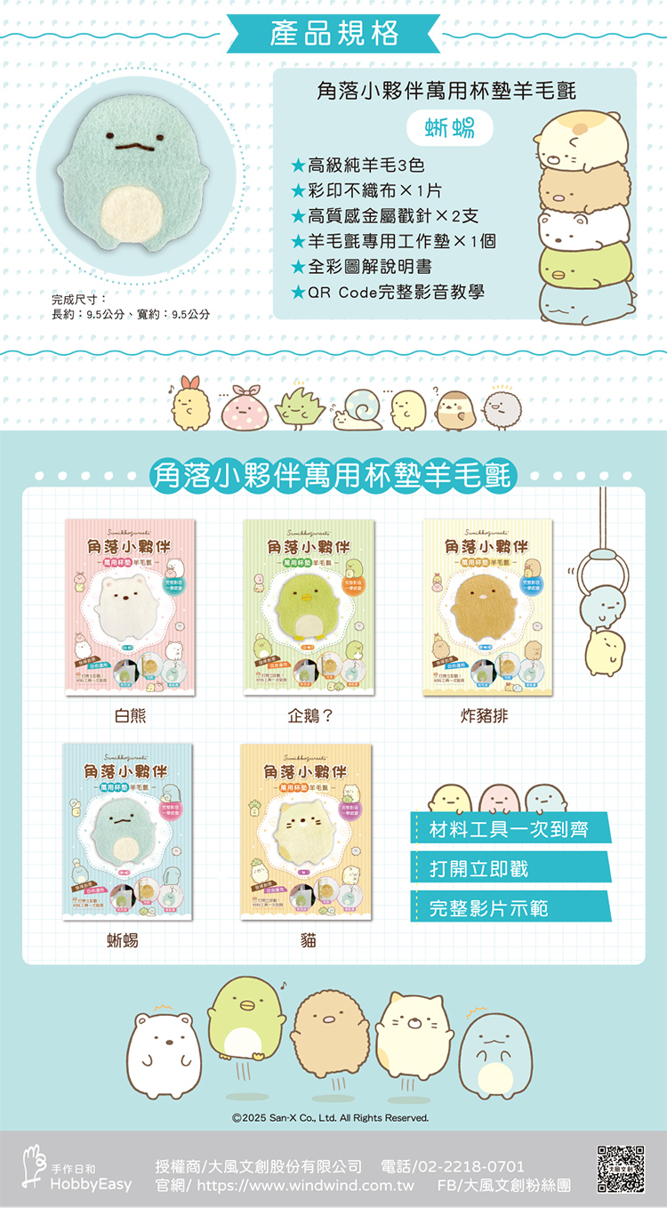 角落小夥伴萬用杯墊羊毛氈:蜥蜴(超值全材料包套組,含影音教學)