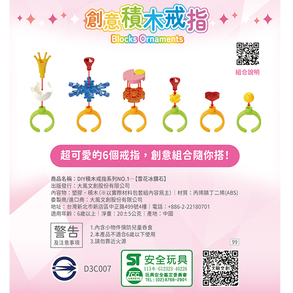DIY積木戒指系列NO1─【雪花冰鑽石】(附組合說明書)