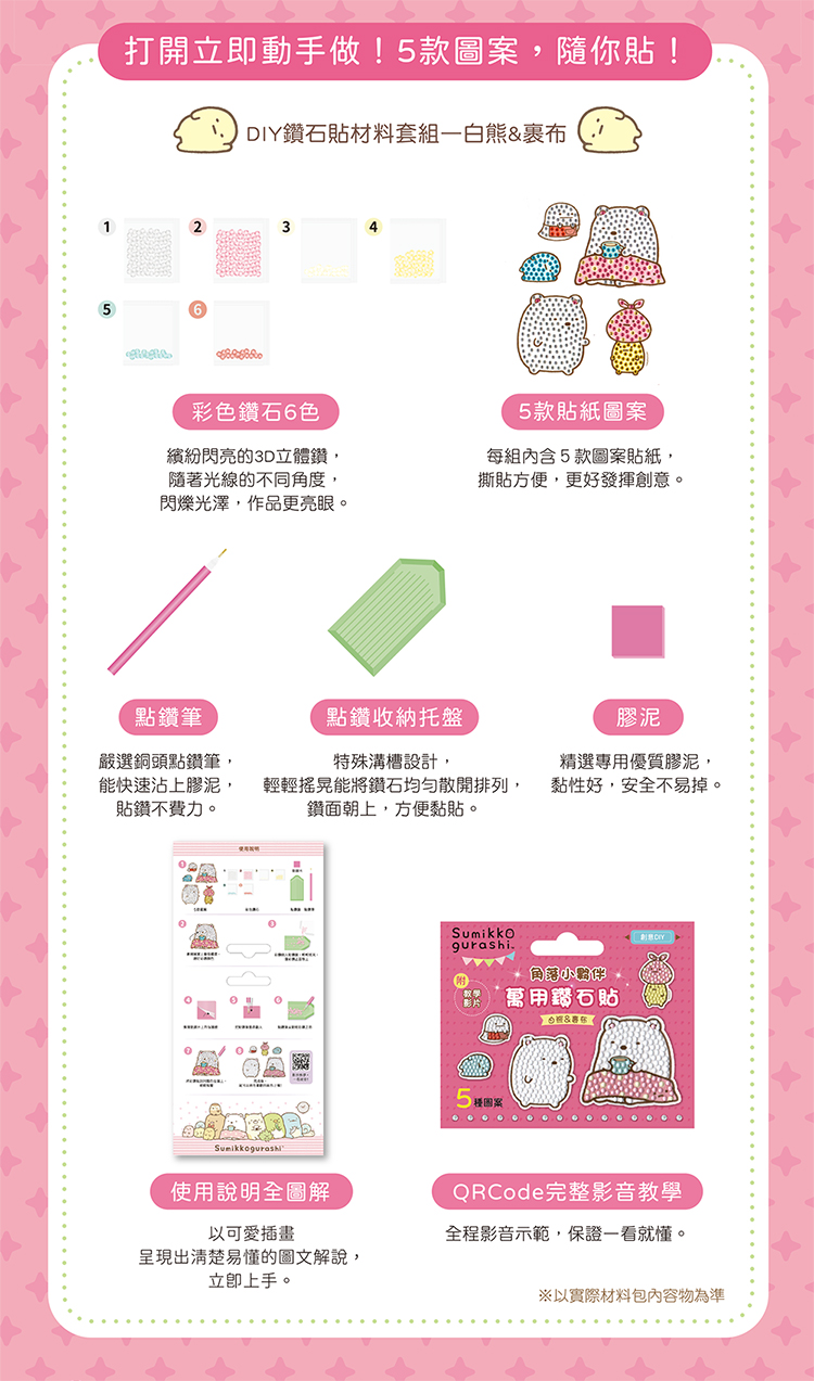 DIY鑽石貼材料套組 -角落小夥伴:白熊&裹布(附影音教學)