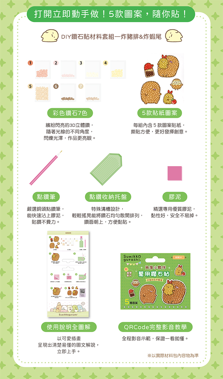 DIY鑽石貼材料套組 -角落小夥伴:炸豬排&炸蝦尾(附影音教學)