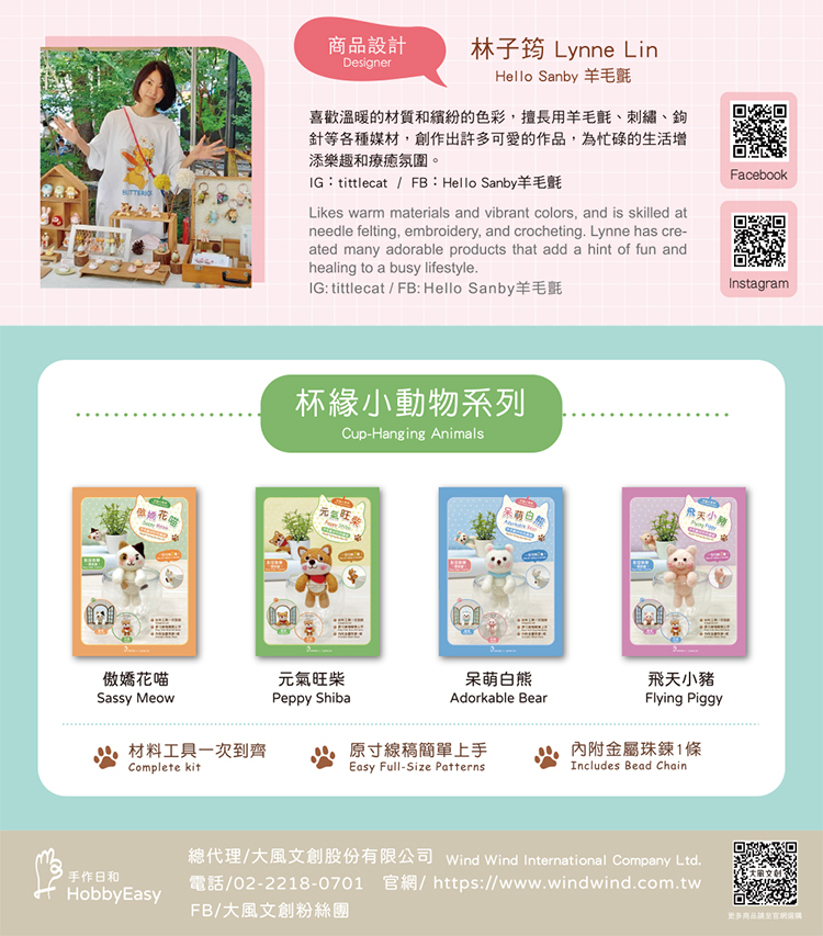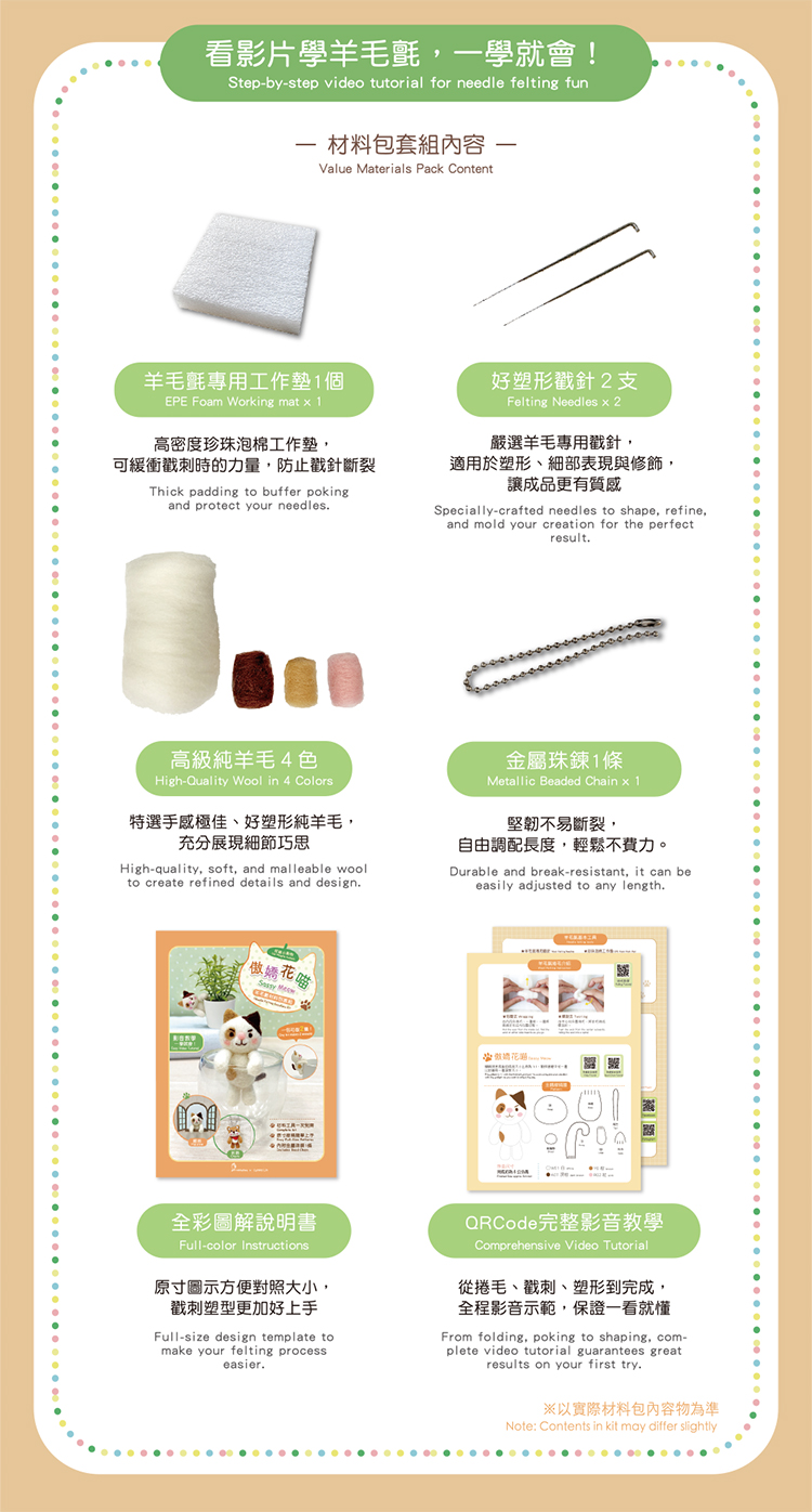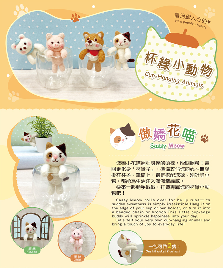 杯緣小動物羊毛氈材料包套組:傲嬌花喵(附珠鍊)
