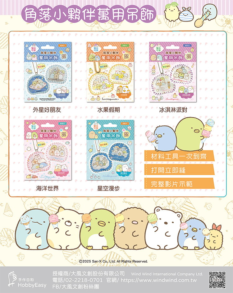 雙倍可愛!角落小夥伴萬用吊飾:冰淇淋派對(超值全材料包套組,含影音教學)