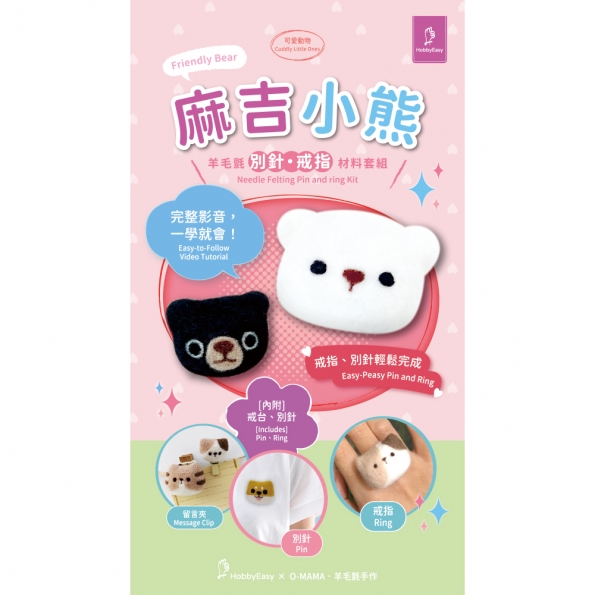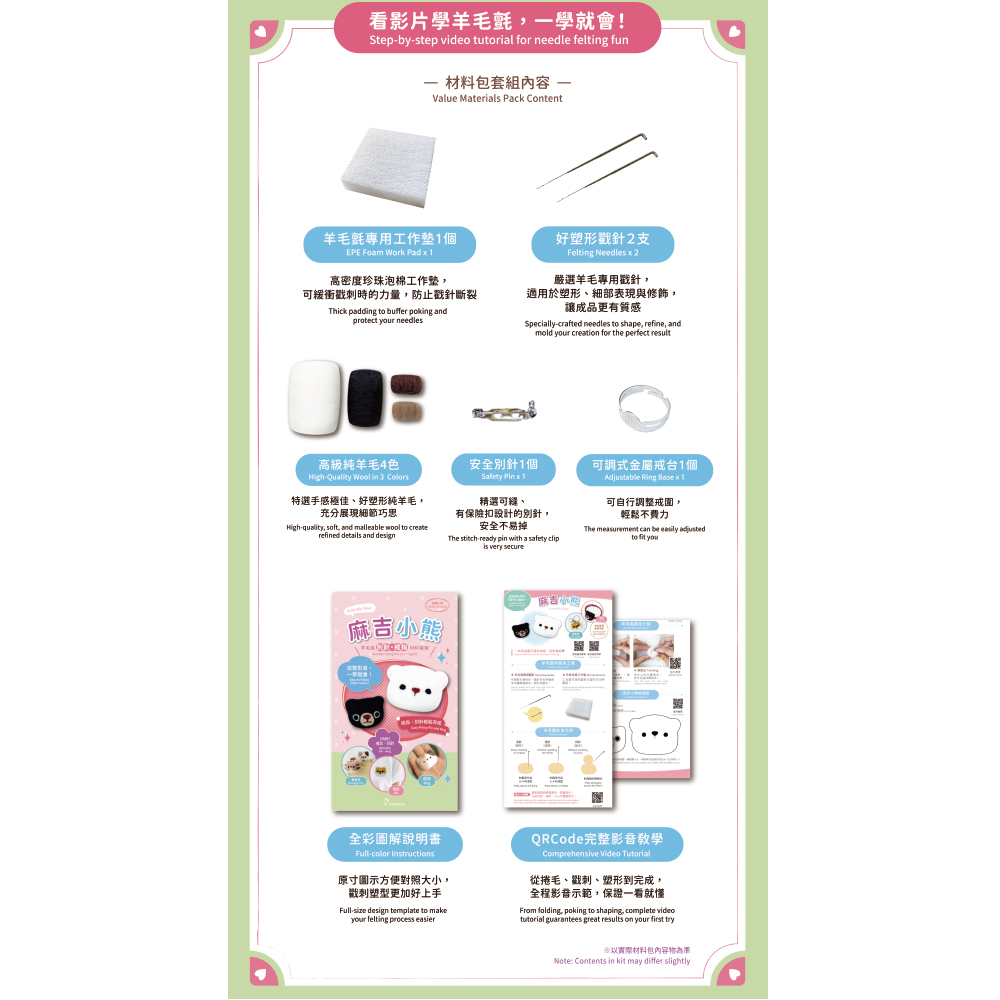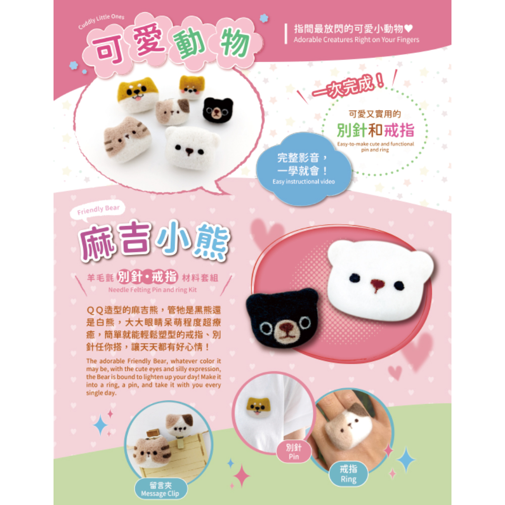 麻吉小熊羊毛氈材料包套組:附別針、戒台,全程影音教學