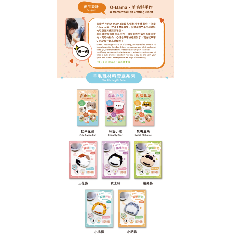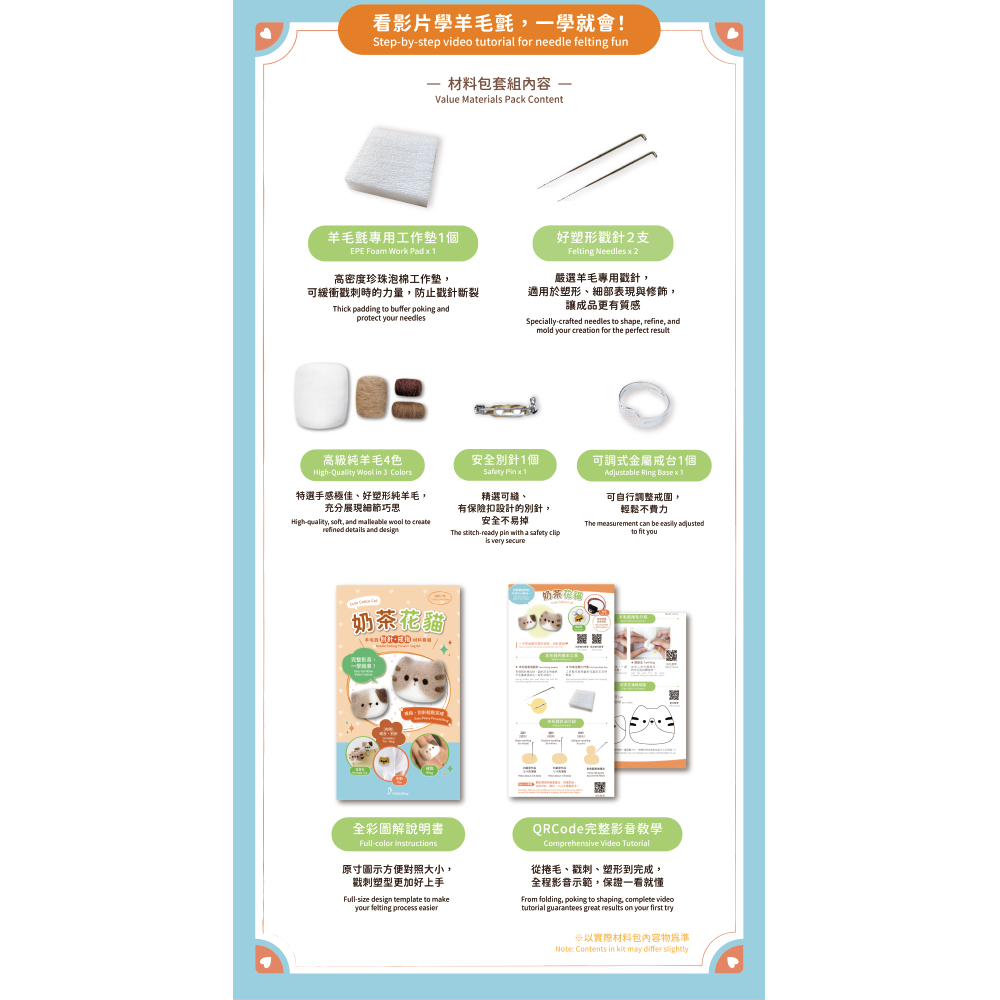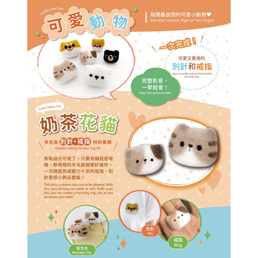 奶茶花貓羊毛氈材料包套組:附別針、戒台,全程影音教學