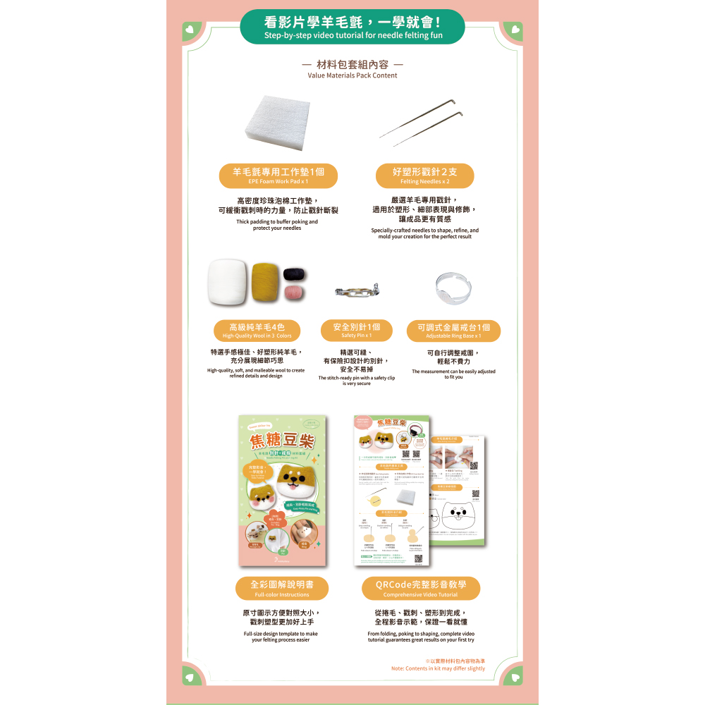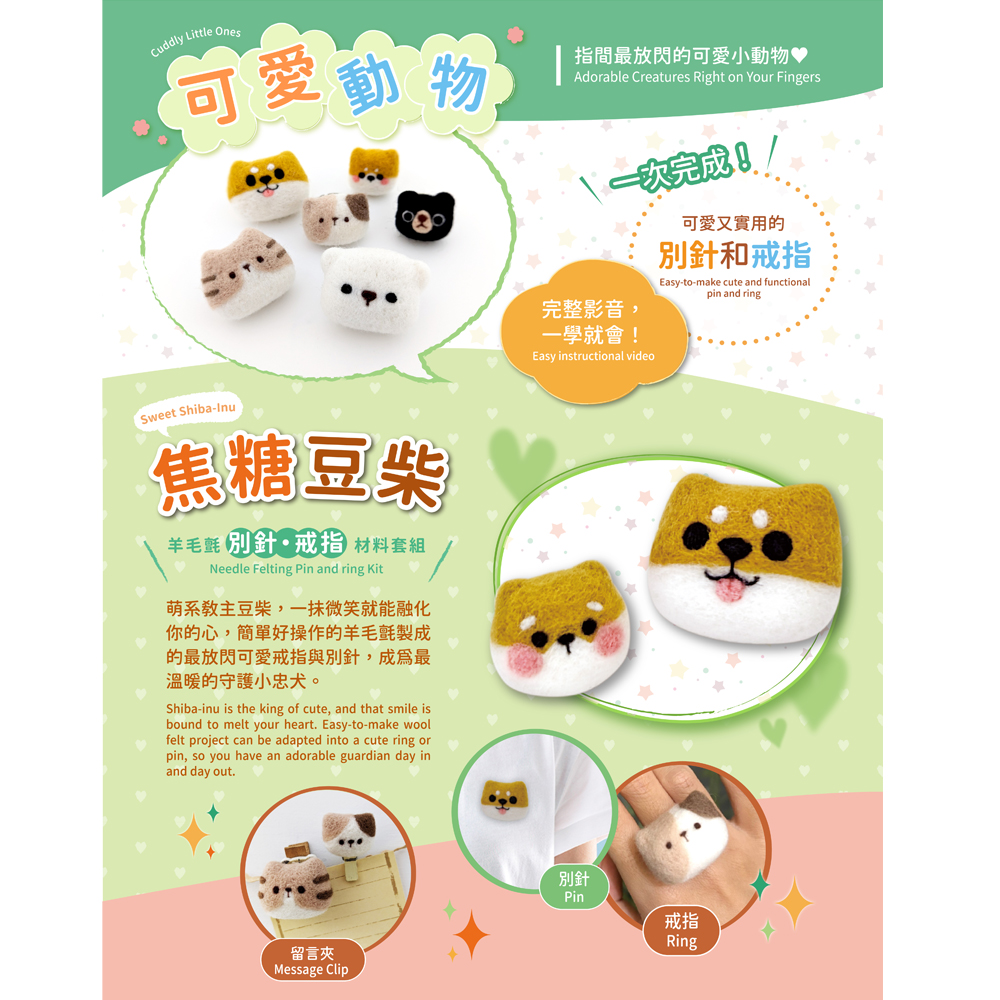 焦糖豆柴羊毛氈材料包套組:附別針、戒台,全程影音教學