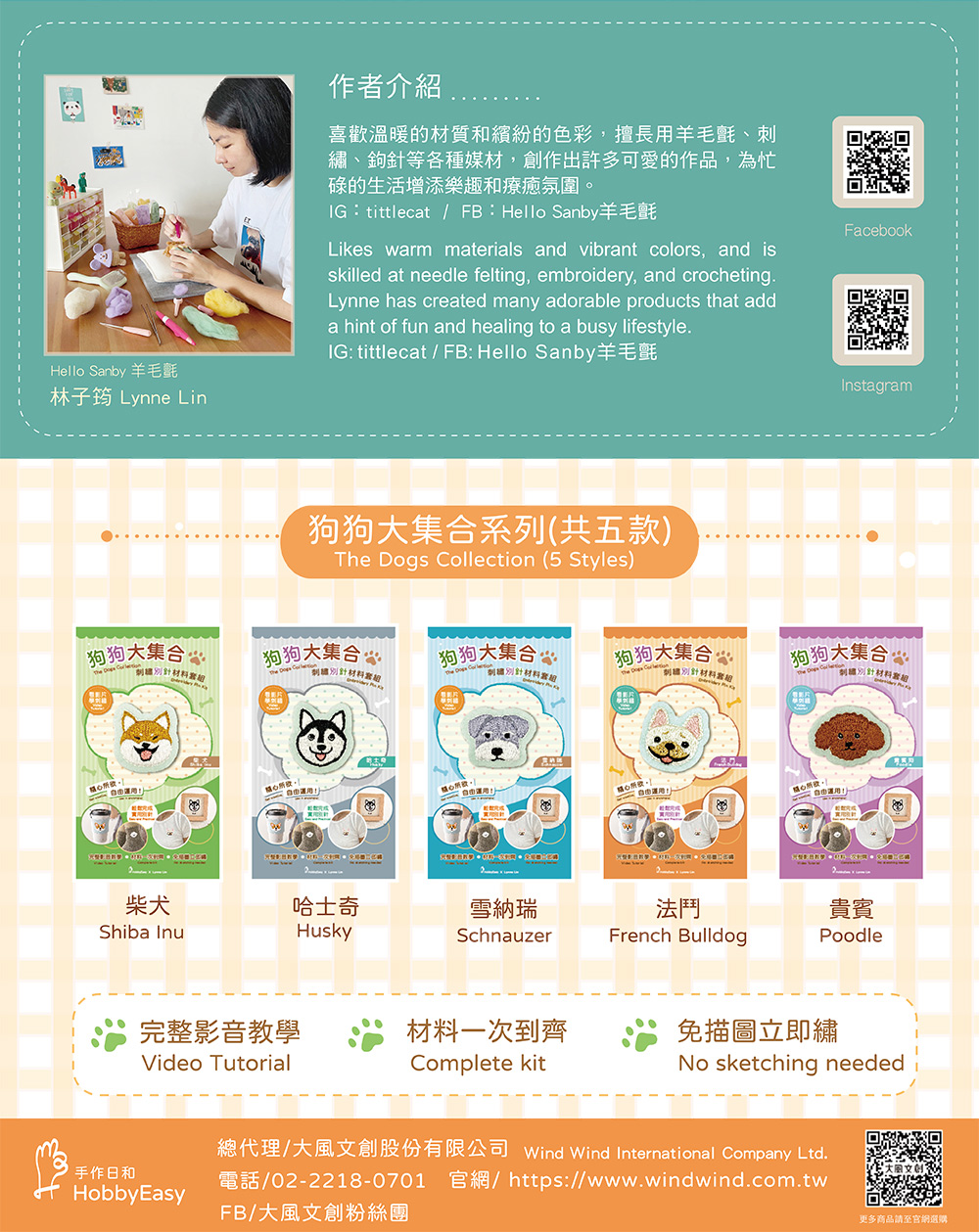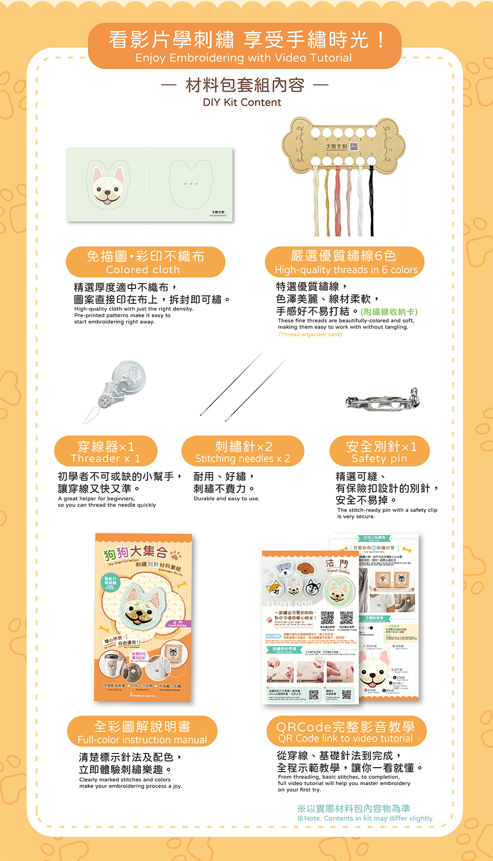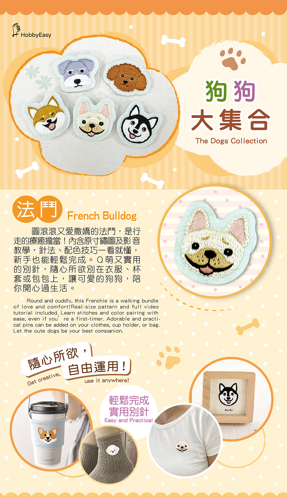 狗狗大集合刺繡別針材料套組:法鬥(附別針,含全程影音教學)