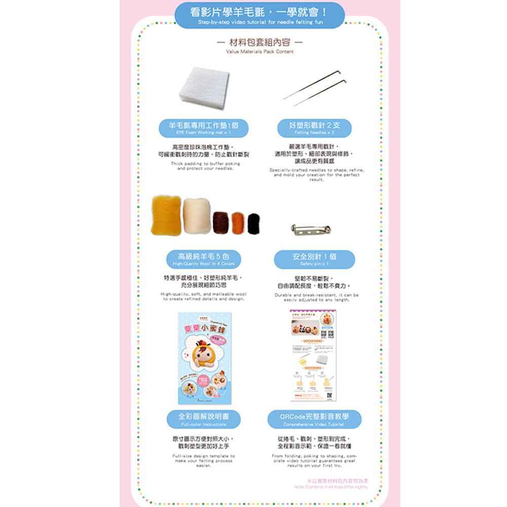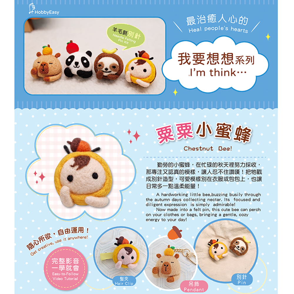我要想想系列—栗栗小蜜蜂羊毛氈材料包套組(附金屬別針、全程影音教學)