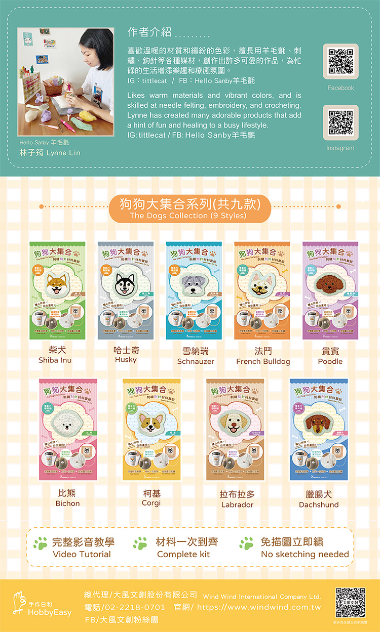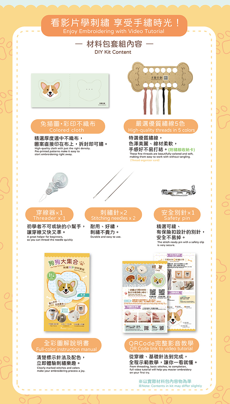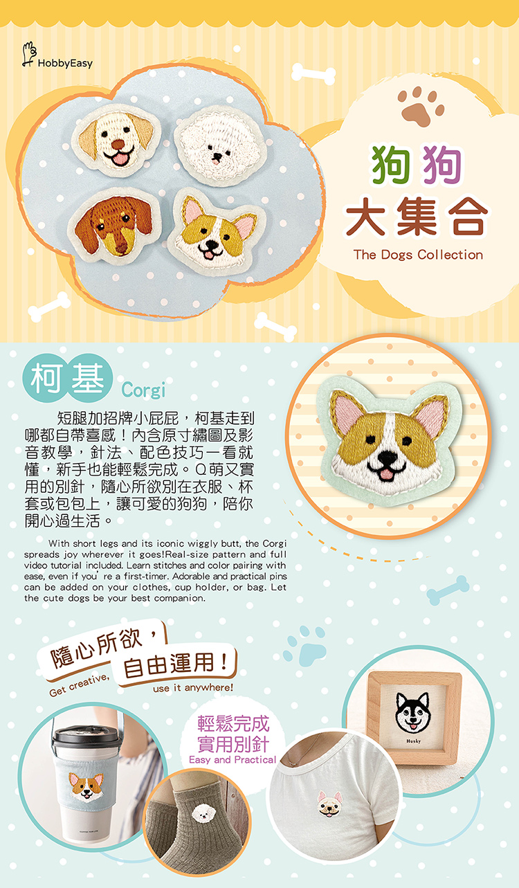 狗狗大集合刺繡別針材料套組:柯基(附別針,含全程影音教學)
