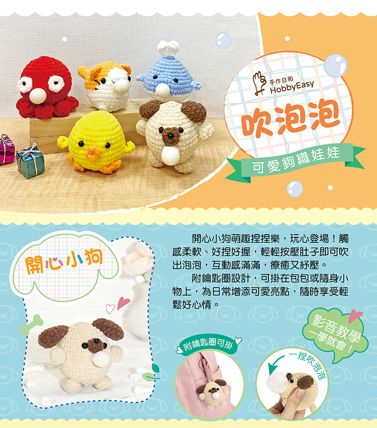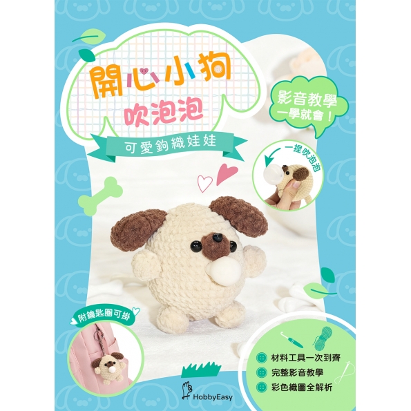 可愛鉤織娃娃:開心小狗吹泡泡(附鑰匙圈)