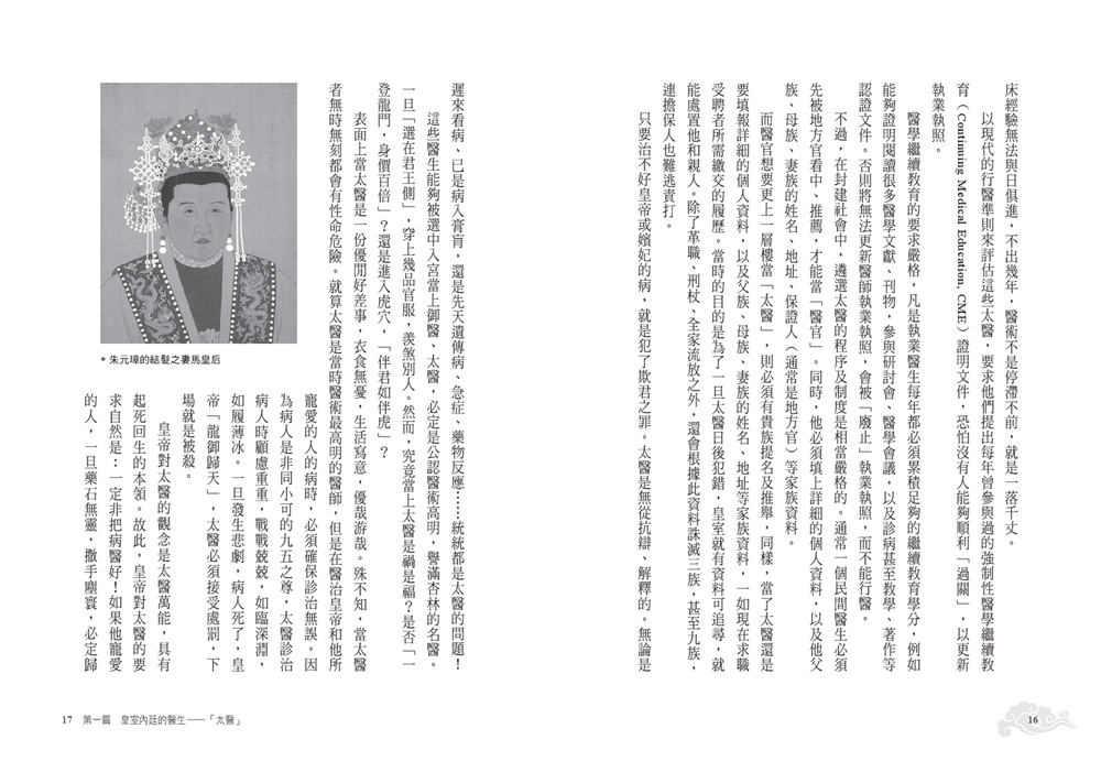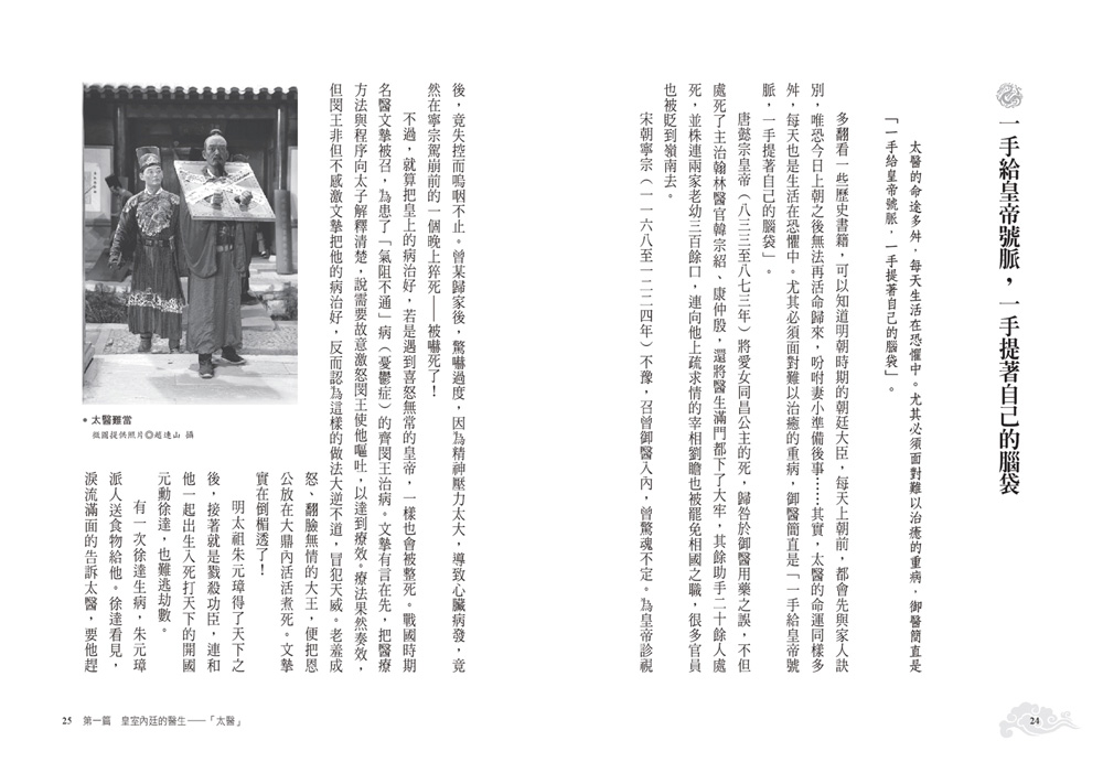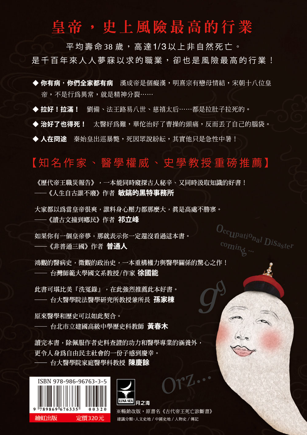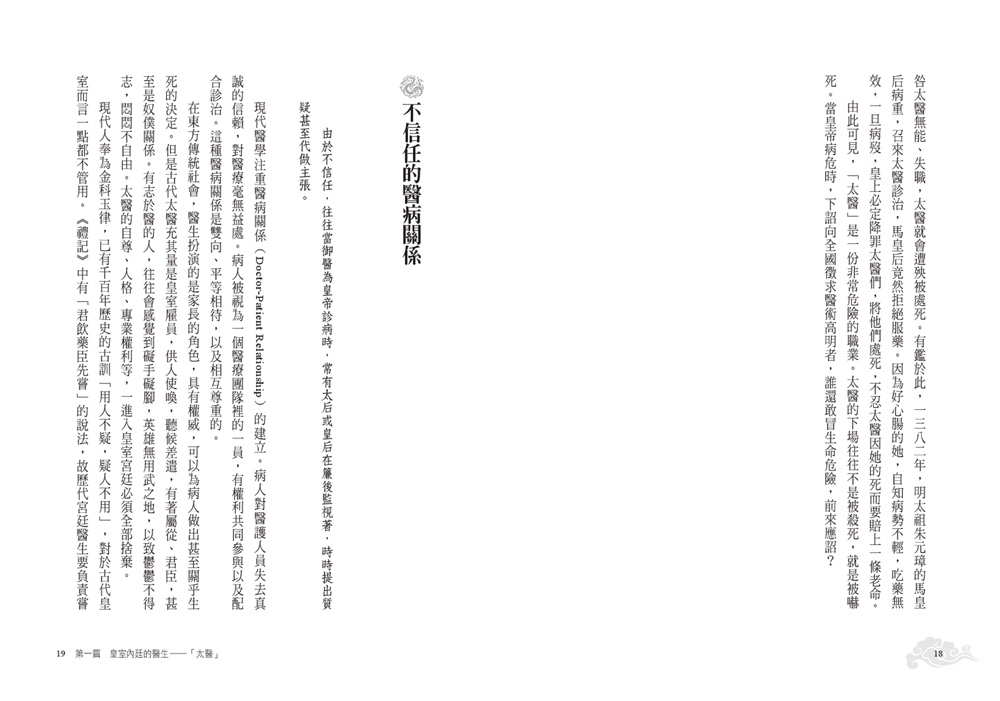 除了皇帝,其實太醫也是一個高風險的行業,表面上看似風光且衣食無憂,可謂錢多事少,然而這些可都是拿命來換的!本書探討了許多歷史上,鮮為人知「醫不好要你的命」、「醫好了也要你的命」的光怪陸離皇室醫療糾紛,而這些太醫的下場豈是一個死字了得,有時還得遭受酷刑後再賠上全家族人的性命!