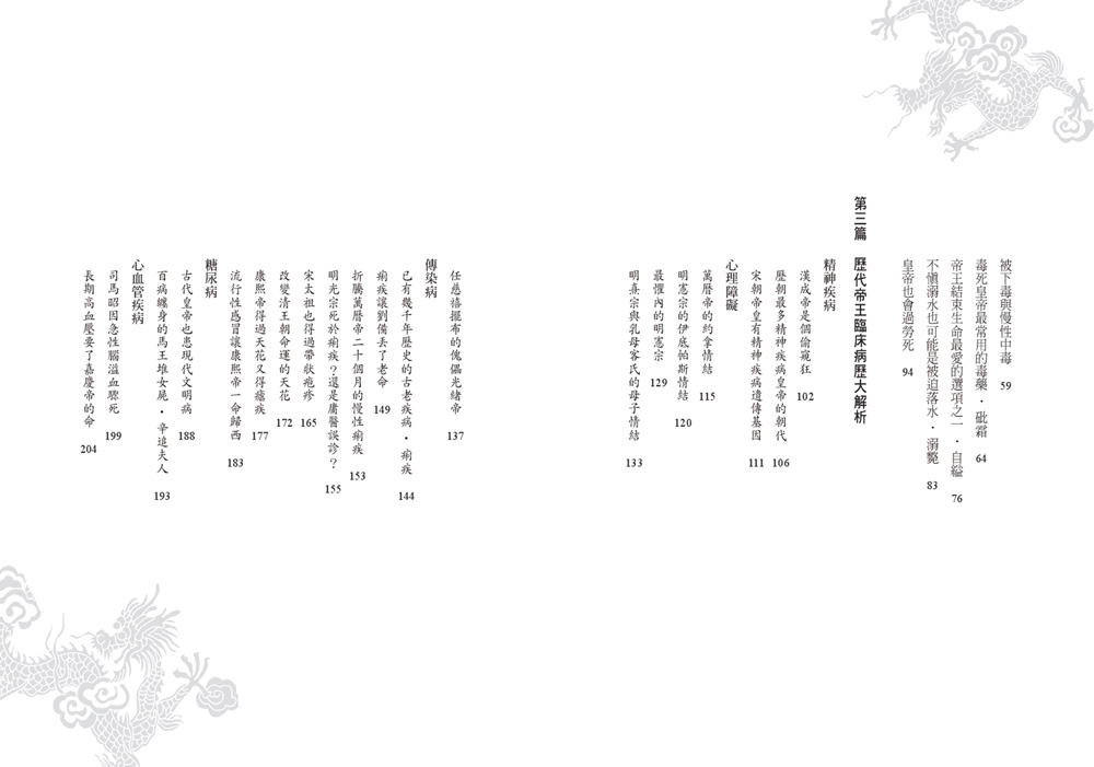 改變一個朝代的,不單單只是氣候變遷、政治因素、資源搶奪……的因素,本書將透過醫學的觀點,揭露歷代皇帝身體狀況對歷史影響的驚人真相,讓人重新審視朝代興亡的另一種可能,原來疾病和歷史的變革息息相關!